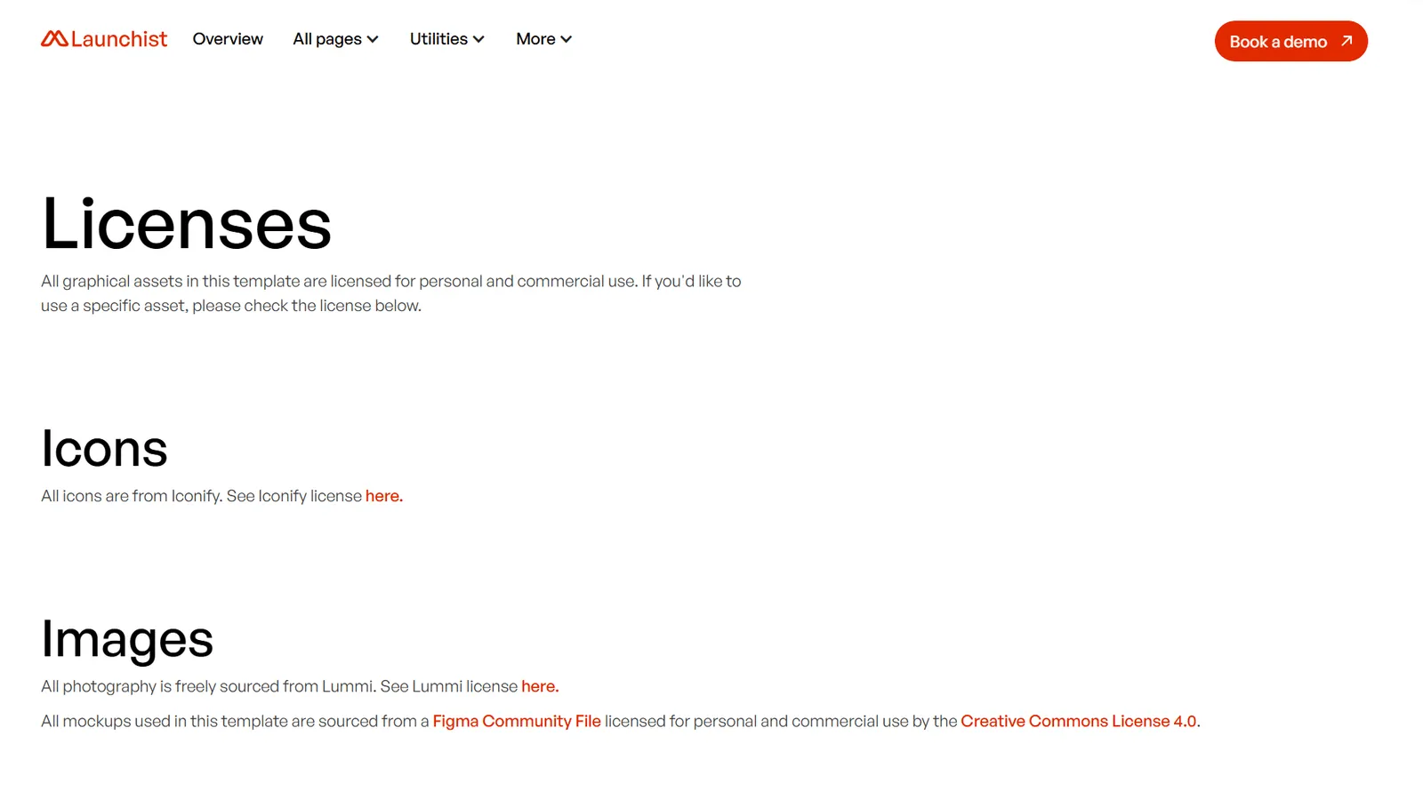 Clear information about template usage rights and any external assets used in the design.