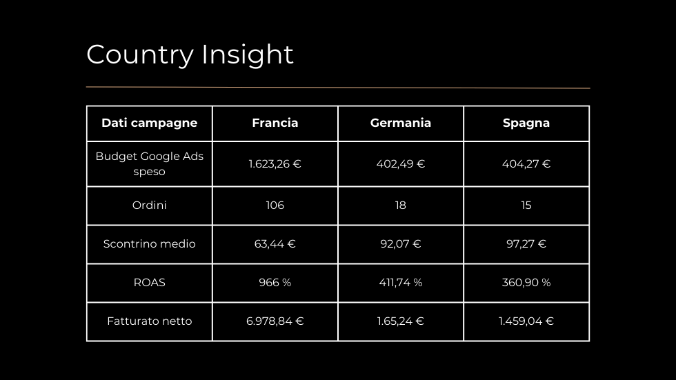Abbiamo riscontrato opportunità maggiori in Francia con una capacità di ritorno sull’investimento pubblicitario (ROAS) molto più alto che in altri mercati, spingendo a cambi strategici e di allocazione del budget.
