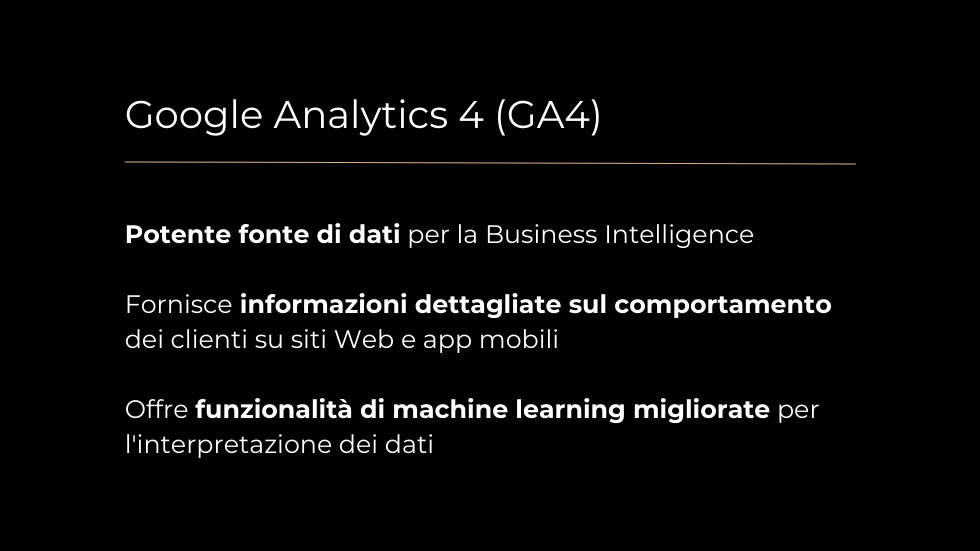 Con l'aumento dei canali, delle piattaforme pubblicitarie e della complessità del percorso del cliente, l'approccio tradizionale non è più sufficiente. GA4 si concentra sull'analisi degli eventi, ossia, sulle micro-azioni compiute dagli utenti, offrendo un quadro più completo sul comportamento dei clienti e sull'impatto dei diversi canali.