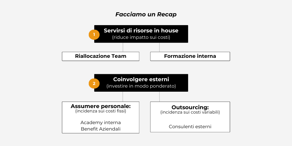 Quando l'azienda però valuta di assumere nuovo personale, se non riesce a trovare la risorsa con i requisiti desiderati, ci sono due alternative da poter seguire: